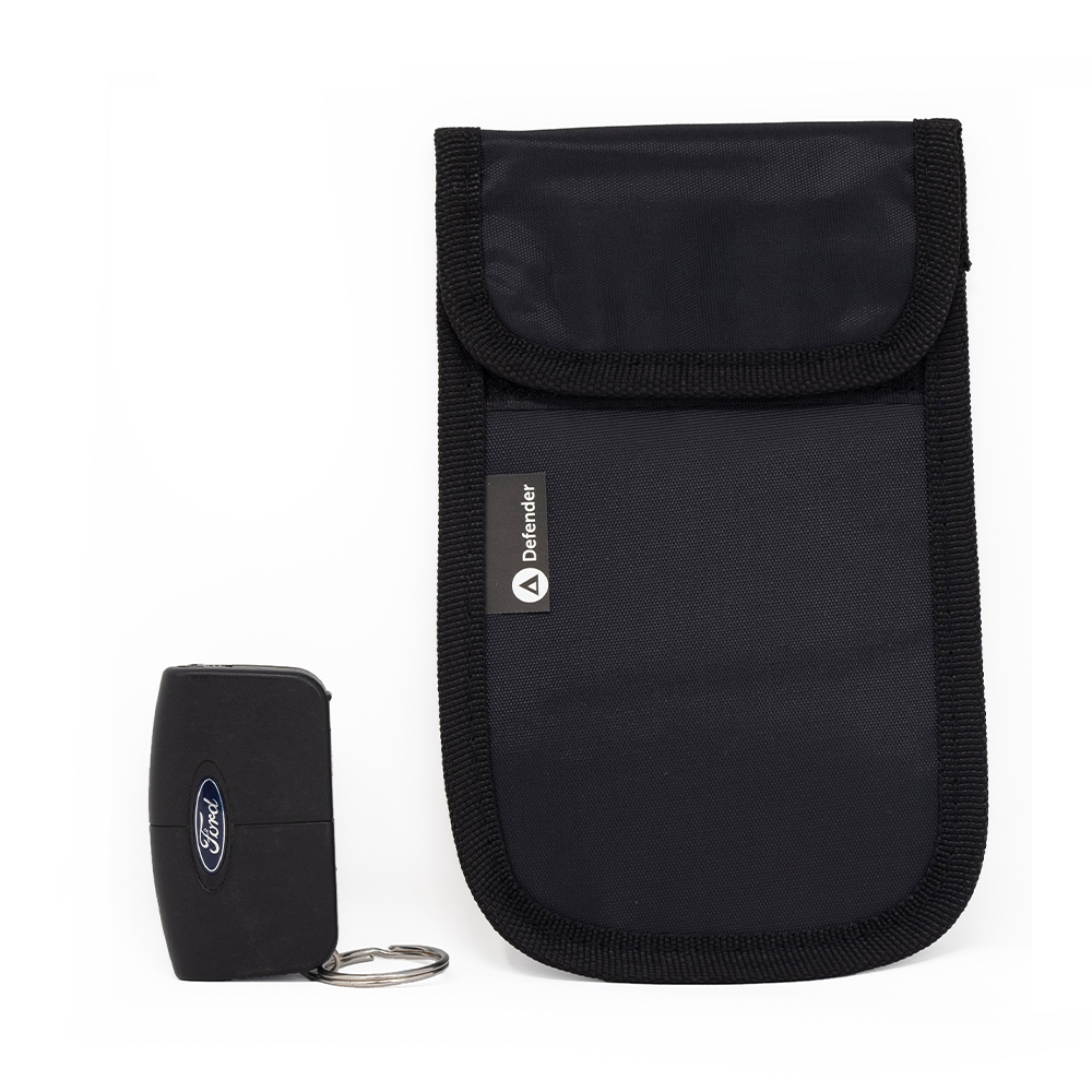 The Defender Signal Blocker is a premium, police-accredited faraday pouch that blocks RFID signals from car keys to prevent keyless vehicle theft.